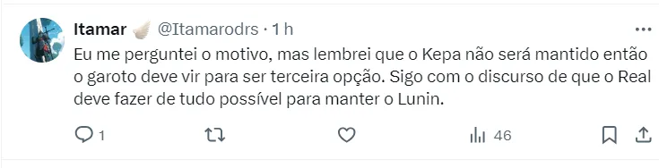 A contratação de Sergio Mestre é visando o futuro, uma vez que Ancelotti está bem servido com Courtois, titular absoluto da meta merengue, e Lunin, que vai renovar seu contrato até 2029.
