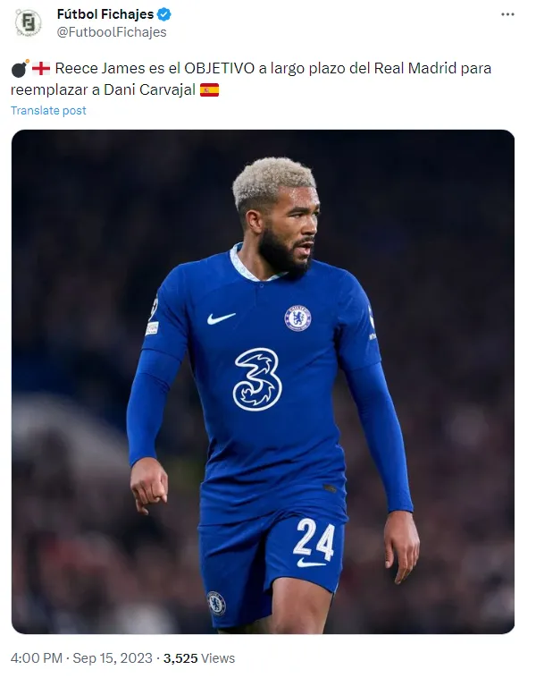 O interesse em James reflete a busca contínua do Real Madrid por reforços de qualidade e a preparação para garantir a continuidade do sucesso na posição de lateral-direita no futuro. O jogador inglês tem contrato com o Chelsea até 2028, e o seu atual valor de mercado é de 65 milhões de euros.