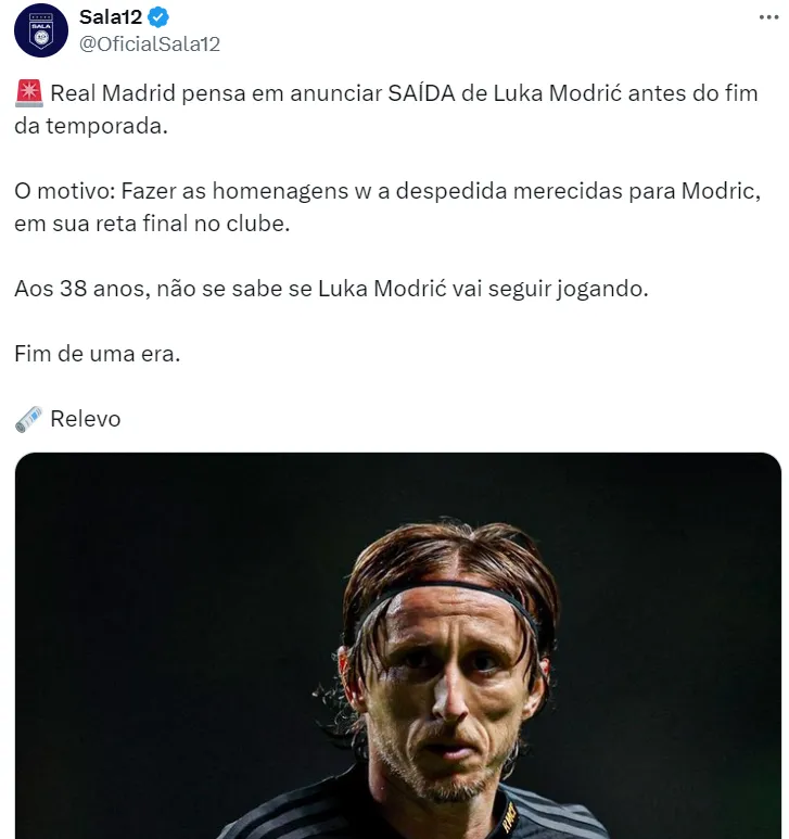 De acordo com informações da imprensa espanhola, é certo que Modric deixará o Real Madrid no final da temporada do futebol europeu. O camisa 10 está em fim de contrato e não deverá ter seu vínculo renovado.