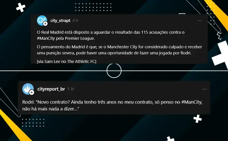 A situação contratual do espanhol com o Manchester City é de um contrato válido até 2026. Neste momento, o volante não pensa em nenhum outro clube e está 100% focado no atual campeão da Premier League.