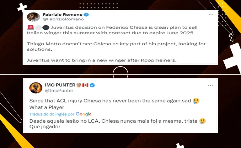 Desta forma, a Diretoria do clube espanhol deve avaliar o tema. Chiesa, inclusive, esteve na disputa da Eurocopa 2024 com a Itália, tendo sido titular nas quatro partidas.
