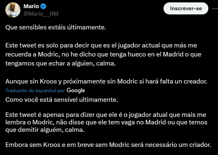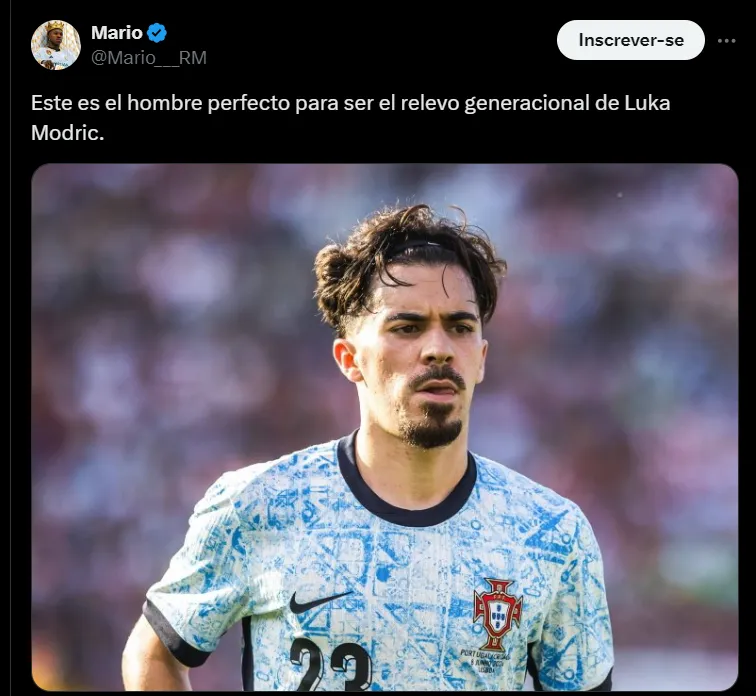 “Este homem é perfeito para ser o substituto natural de Luka Modric”, publica um perfil do Real Madrid no X (antigo Twitter).