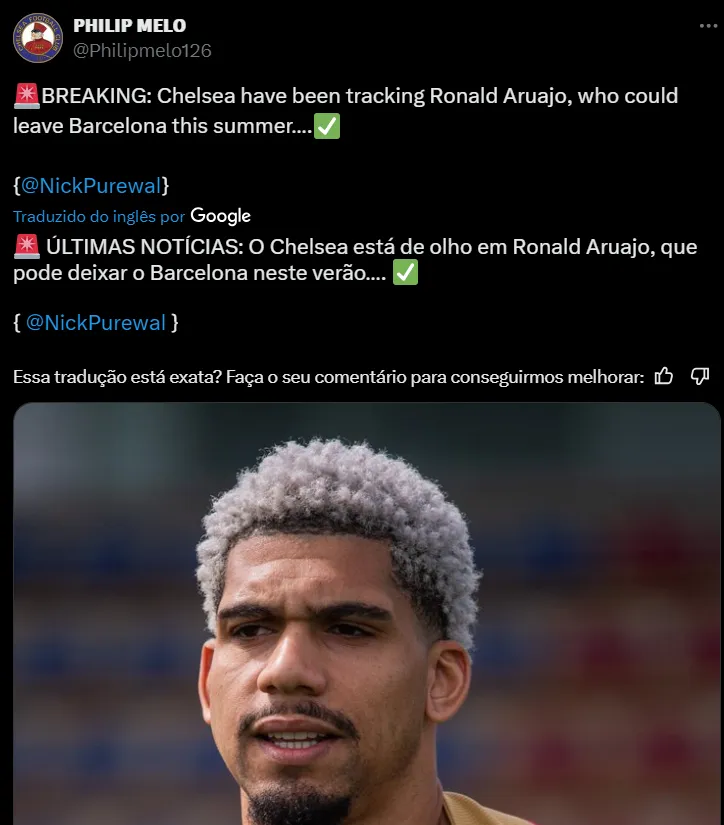 Ronald Araújo ama Barcelona, tem contrato até 2026, mas não sabe qual será do seu futuro. Atualmente lesionado, o time catalão tinha planos de negociá-lo, mas a condição física afasta os interessados no momento.
