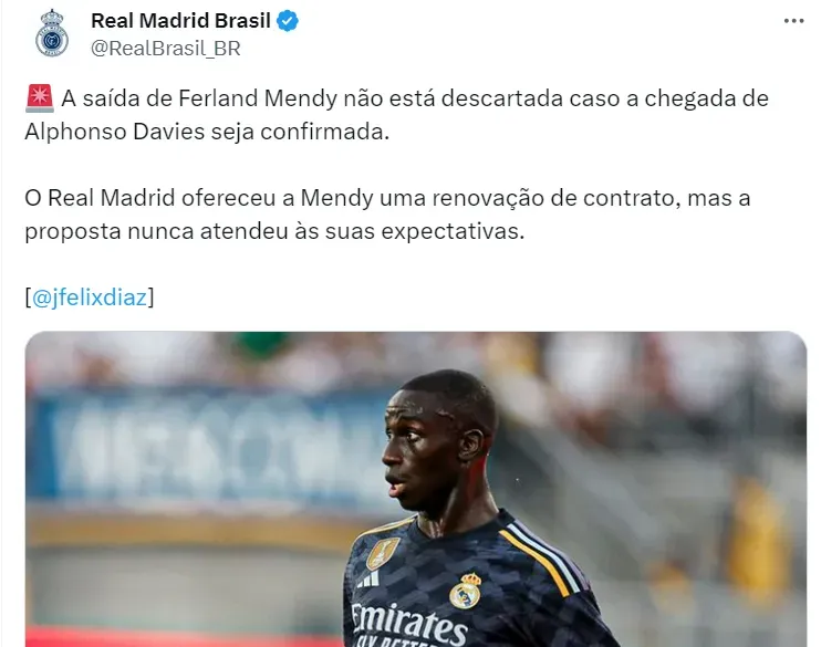 A ideia do Real em vendê-lo passa pela chegada de Davies. Além disso, há informações locais que a Mendy também deseja deixar o clube do Bernabeu, pois não se sente valorizado – o lateral recusou abordagens do clube merengue para uma renovação contratual.