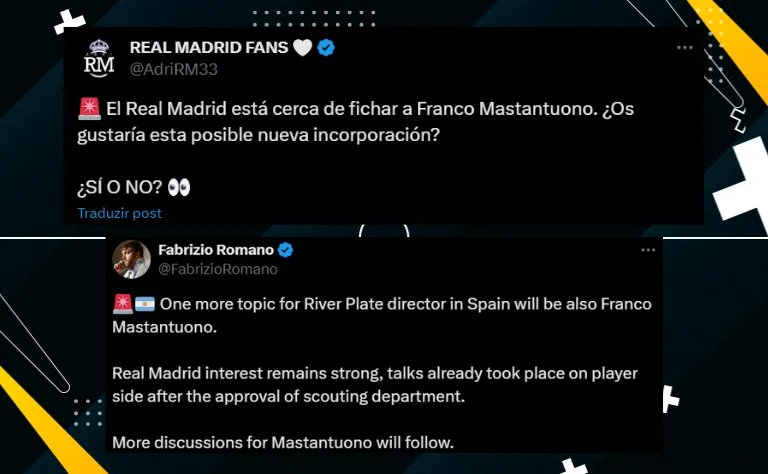 Pelo lado de Franco Mastantuono, há o sinal positivo para atuar em Madrid, o que deixa o clube merengue à frente de todos os demais interessados no jovem, como, por exemplo, o Manchester City.