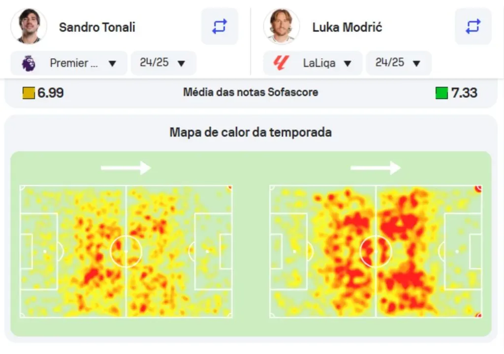 Sandro Tonali joga na mesma posição que Luka Modric no Real Madrid. O jogador do Newcastle, de 24 anos, está no radar do clube merengue para a próxima temporada.