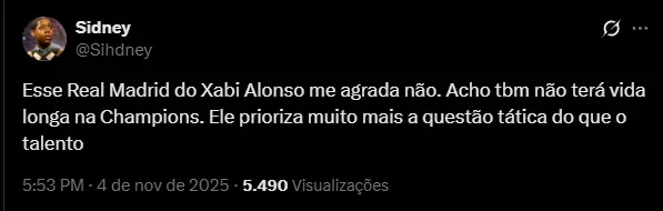 Nas redes sociais, os Fanáticos detonaram o técnico Xabi Alonso, que não conseguiu fazer o trio de ataque formado por Bellingham, Vini e Mbappé render. Eles também questionaram o fato de que o comandante não consegue apresentar um bom futebol contra adversários do mesmo nível.