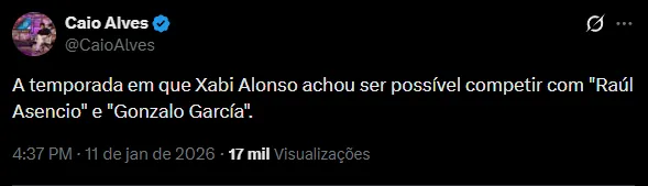 Nas redes sociais, o técnico Xabi Alonso foi grande alvo de críticas por parte dos torcedores da equipe merengue. Eles culpam as escolhas do treinador como o principal ponto para que a equipe não conseguisse superar os Culés.