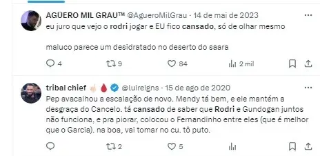 Rodri afirmou que o cansaço impactou no desempenho da equipe no primeiro tempo da partida: “Mas precisamos descansar para ser honesto. Eles (Real Madrid) estavam um pouco mais frescos no primeiro tempo do que nós, é normal”, disse.