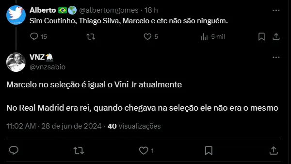 Marcelo deixou o Real Madrid na temporada 2021/22, quando o clube venceu a Champions League com gol de Vini Jr na final contra o Liverpool. Naquela ocasião, o lateral levantou a taça.