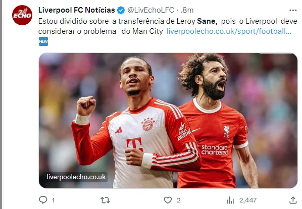 Em vista disso, o Liverpool já está considerando potenciais substitutos para o egípcio, e um dos nomes mais recentemente cogitados é o do alemão Leroy Sané, atual camisa 10 do Bayern de Munique, de acordo com informações do Bild.