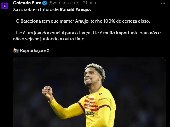 “O Barcelona tem que manter Araujo, tenho 100% de certeza disso”, declarou o comandante antes de abrir o jogo sobre a importância dele para o dia a dia do elenco.