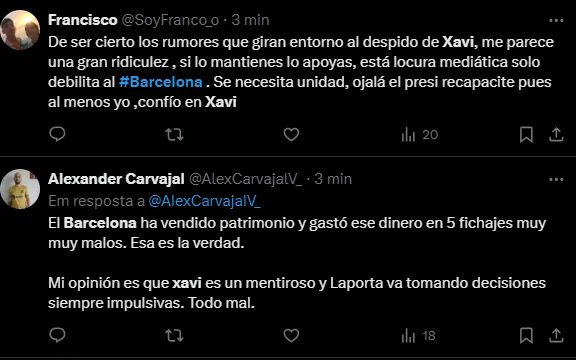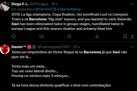 Resposta da torcida sobre Xavi no Barcelona