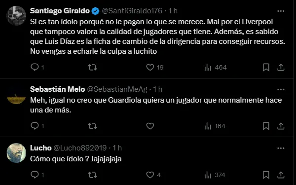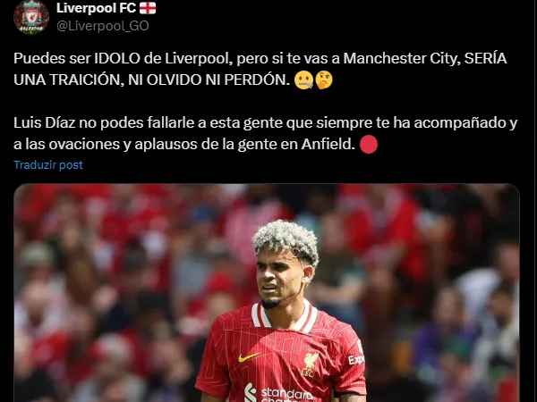 Diante da atualização inicial, Fanáticos por Futebol que acompanham os Reds decretaram traição de L. Díaz caso ele troque Anfiled pelo Etihad Stadium na janela de transferências.