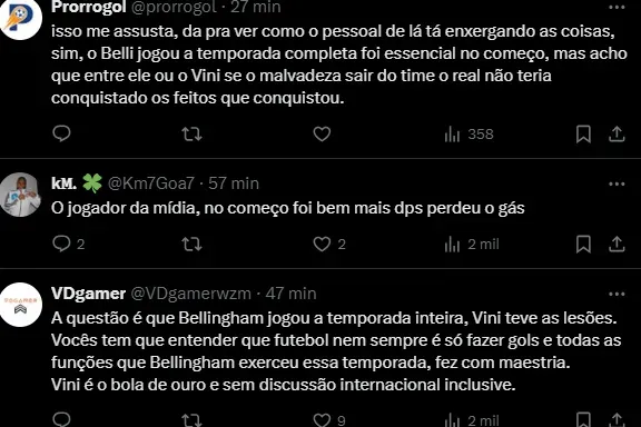 Muitos jogadores concordam que Vinícius Júnior merece ganhar a Bola de Ouro pelo que fez na temporada 2023/24 e ainda pode continuar desempenhando na Seleção Brasileira na disputa da Copa América.