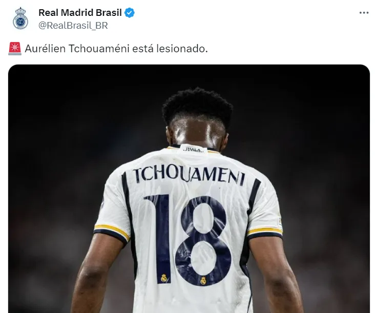 Tchouaméni, com uma lesão no pé, se tornou uma grande dúvida para a grande final da competição contra o Borussia Dortmund. Dentro do Real Madrid, há pessimismo quanto à presença do francês.