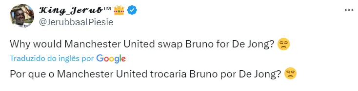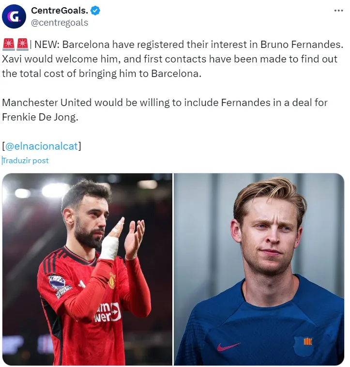 O clube da Premier League estaria disposto a incluir Bruno Fernandes em um acordo por De Jong, de acordo com a mesma fonte. Ainda não se sabe se esse possível negócio seria sem custos, ou seja, jogador por jogador.