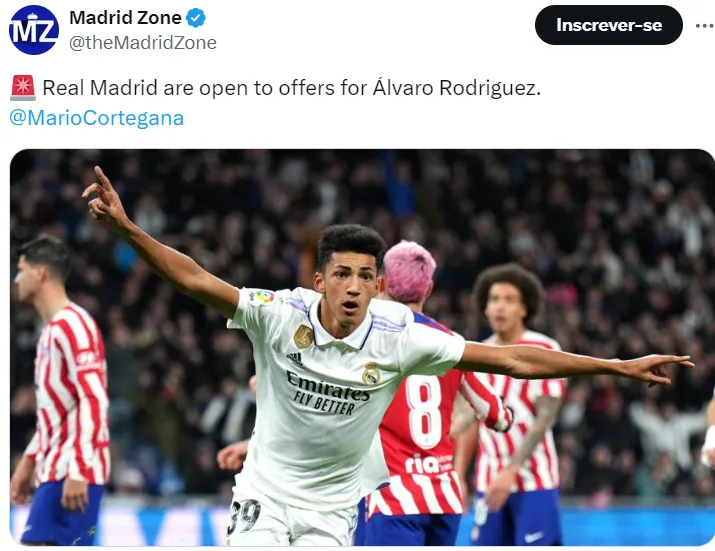 O jovem Álvaro Rodríguez não deverá ser aproveitado no elenco merengue e foi colocado à venda pela diretoria. O jogador, de 19 anos de idade, tem contrato até 2027, e nenhum jogo brusco deverá ser feito diante de ofertas. A informação é de Mario Cortegana, do jornal The Athletic.