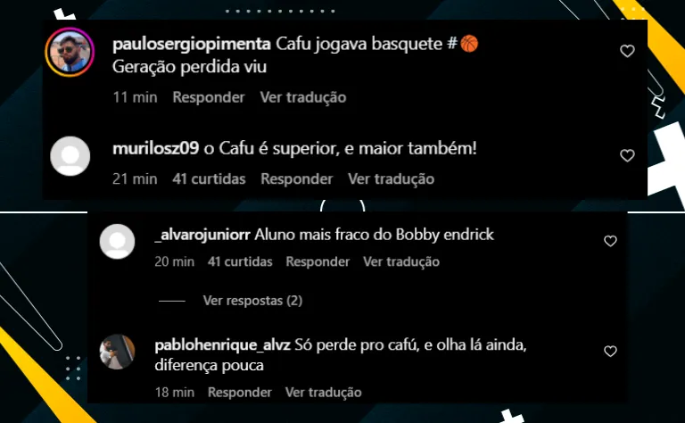 “Cafu jogava basquete. Geração perdida, viu”, disse um torcedor. Além disso, comparações com Endrick também foram mencionadas pelas fãs brasileiros. “Aluno mais fraco do ‘Bobby’ Endrick”, brinca um torcedor.