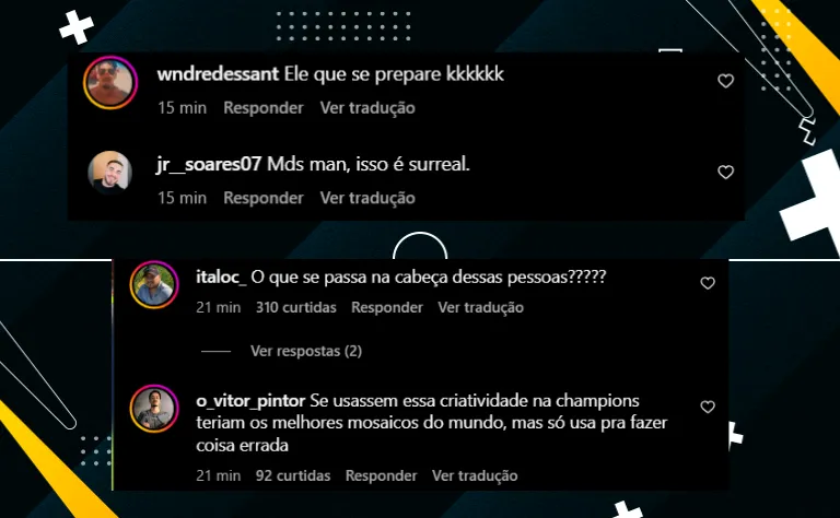Nas redes sociais, torcedores brasileiros e fãs de Vinicius Júnior se mostram espantados com tamanha vontade dos espanhóis em incomodar o camisa 7. “O que passa na cabeça dessas pessoas?”, disse um fã revoltado.