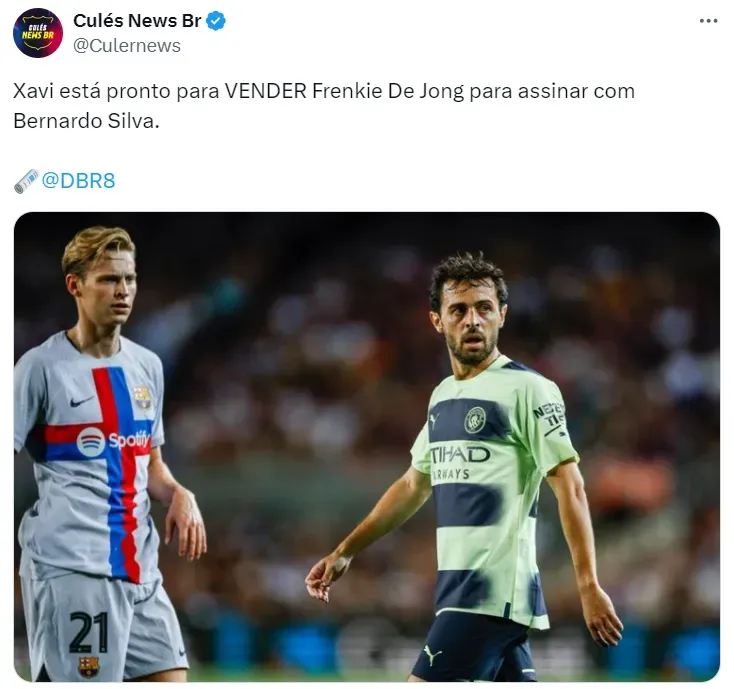 Segundo informações do jornalista David Bernabeu Reverter, periodista do jornal Sport, o aval de Xavi para a venda de De Jong tem relação com o português Bernardo Silva, do Man City, que deseja ingressar no clube Catalão.