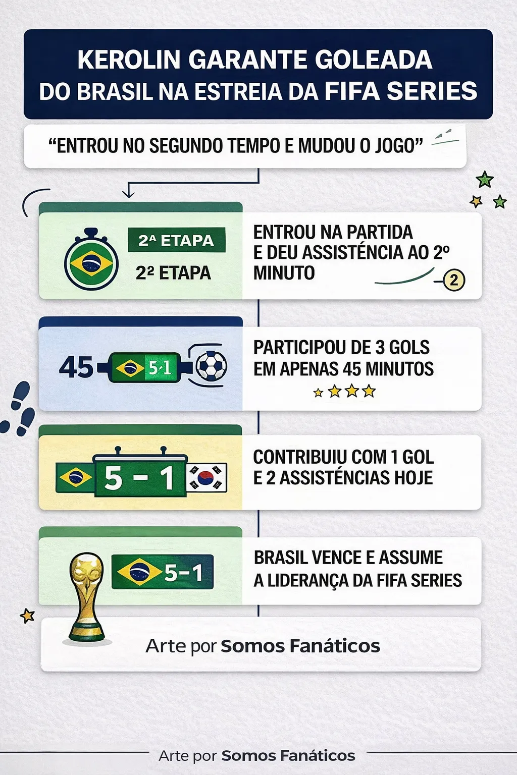 Uma das referências de ataque do Manchester City na temporada 25/26, Kerolin fez seu quarto jogo com a camisa do Brasil em 2026, e teve três participações em gols pelo confronto, marcando um gol e deixando duas assistências em apenas 45 minutos em campo.