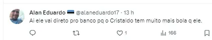 Porém, internamente há um ‘desconforto’ em relação a um dos jogadores do elenco comandado por Renato.