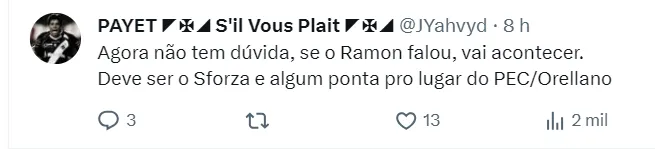 Um que está bastante próximo é Sforza. Após vender Marlon Gomes, o Vasco deve trazer o volante que atua no Newell’s Old Boys, da Argentina e Ramón o elogiou.