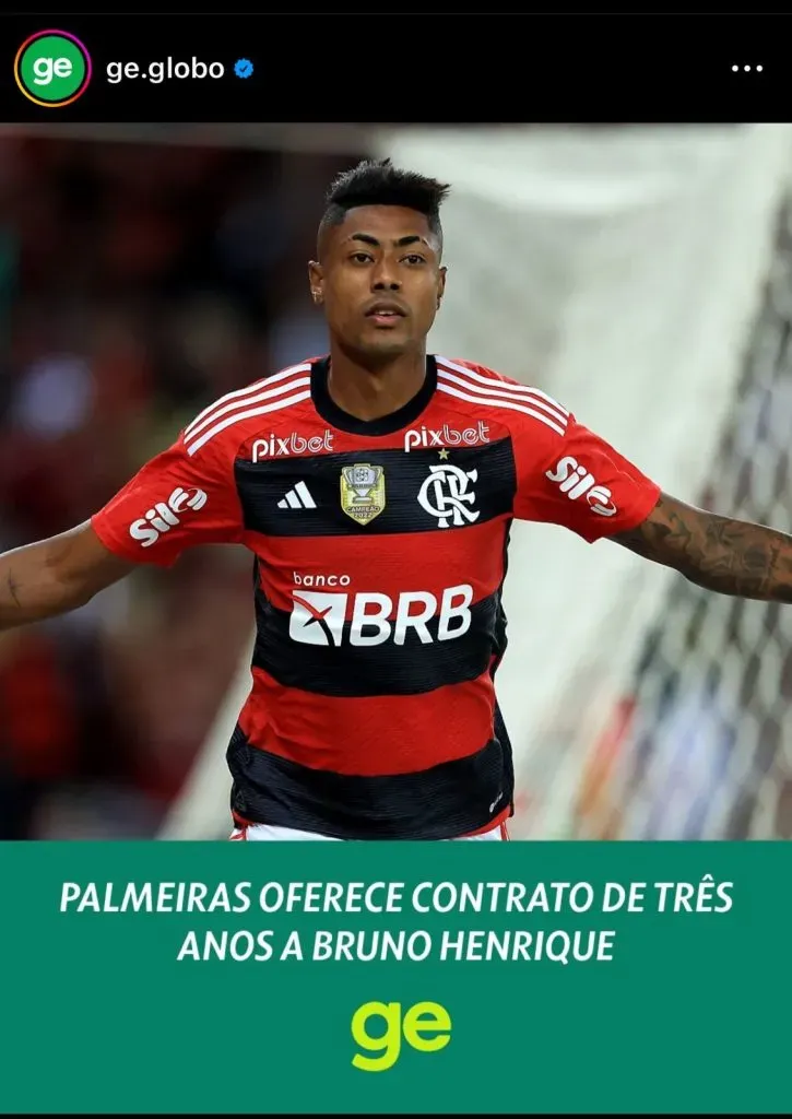 Segundo informações do jornalista Thiago Ferri, o Palmeiras teria apresentado uma oferta para os empresários de Bruno Henrique nos últimos dias.