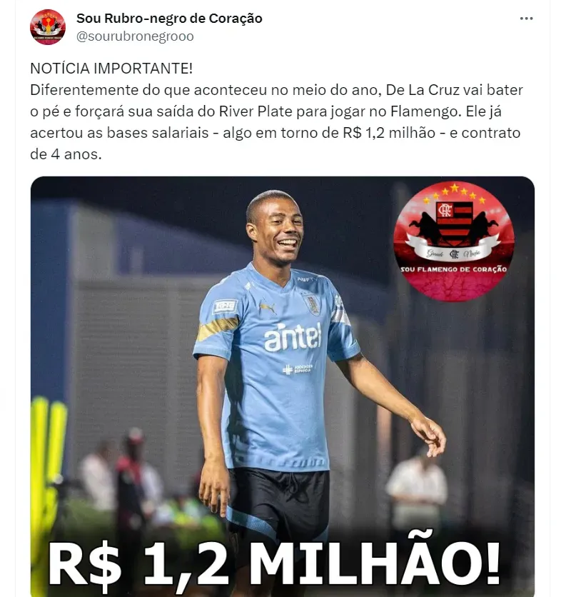 Outras fontes também informam que um acordo verbal já foi selado entre as partes, como Jorge Nicola. No entanto, para um negócio, acontecer, de fato, resta ainda o Flamengo chegar a um acordo com o River.