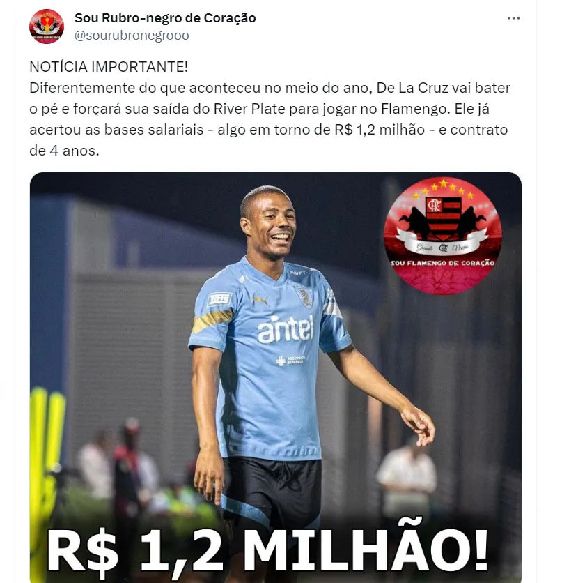De acordo com informações do portal Sou Rubro Negro de coração, De La Cruz já acertou as bases salariais com o Flamengo: salário de R$ 1,2 milhão por mês, e contrato de 4 anos.