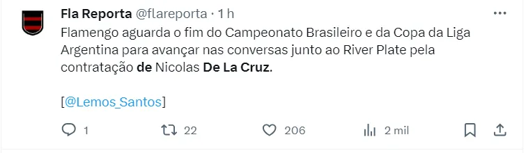 A perspectiva de grandes nomes deixando o Flamengo abre espaço para grandes contratações. Nesse cenário, Jorge Nicola revelou a lista de possíveis reforços para o Flamengo em 2024, e o mais próximo neste momento é De La Cruz, conforme já conhecido pelos torcedores.