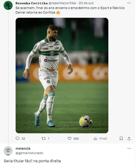Fabrício Daniel quando atuava pelo Coritiba | Foto: Reprodução/Youtube Coritiba