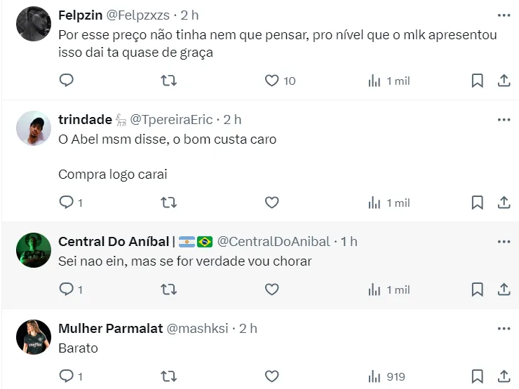Nomes como de Michael, do Al Hilal, e Tetê, do Gatalsaray, são alvos da diretoria e também de Abel Ferreira, mas o alto preço desses atletas afastam um negócio no momento.