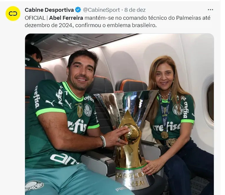Todavia, esse acordo levará, se for acontecer, mais um ano, já que Abel Ferreira tem planos de seguir fazendo o Verdão campeão de grandes conquistas no próximo ano.