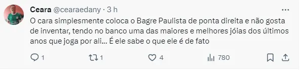Abel, por sua vez, segue totalmente focado no Palmeiras, que ontem deu um novo susto ao torcedor. A vitória pelo Paulistão veio já nos minutos finais da partida.