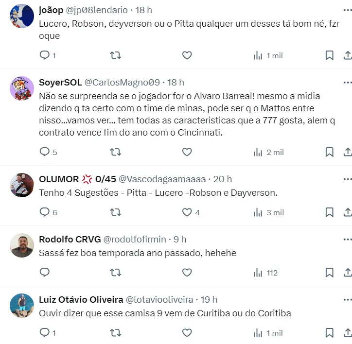 Nas redes sociais, em meio à informação quente da fonte, torcedores vascaínos tentam advinhar o novo atacante que teria sido aprovado pela empresa americana, dona do clube carioca.