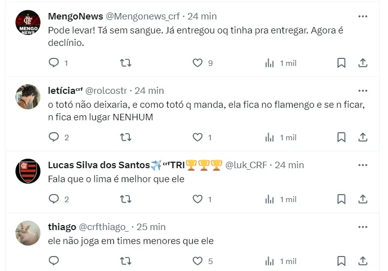 “Temos uma boa relação com a diretoria do Flamengo, mas, até onde sei, ele ainda é jogador do Flamengo e está em negociação para renovar. Mas, se não ficar e não se acertar com o Flamengo…”, finaliza.