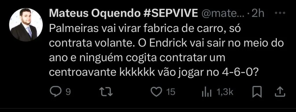 Por isso, o interesse pelo jogador surgiu por parte do Palmeiras, que quer novos jogadores para seu meio-campo, uma das áreas em que a torcida tem cobrado reforços.