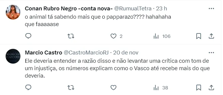 Edmundo usou seu canal do Youtube onde revelou informações sobre o Vasco e também sobre o Flamengo. A grande informação sobre o clube da Colina foi os números divulgados da folha salarial, que bate na casa de R$ 23 milhões, de acordo com ele.