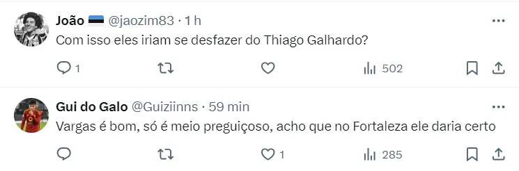 Outro ponto é o salário, acima do teto para o Fortaleza. No Galo, Vargas tem seus ganhos acima de R$ 600 mil por mês. Ele é um dos atletas mais bem pagos do elenco mineiro.
