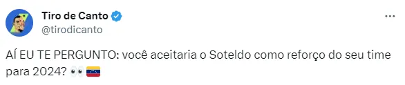 Outro nome que tem moral no mercado da bola é justamente o de Yeverson Soteldo, que já desperta os olhares de diversas equipes. Ontem, Sevilla e Corinthians foram ligados.