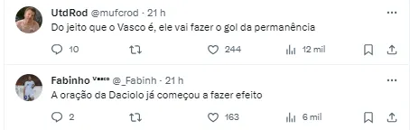 Dessa forma, a tendência é que esta quarta-feira seja a última partida de Sebastian Ferreira com a camisa do Vasco caso ele entre em campo. Para o jogador seguir na Colina, apenas se houver uma reviravolta.
