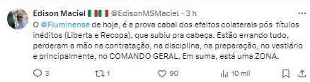 A atitude deixou o elenco do Fluminense ainda mais revoltado com o jogador. Internamente, a situação do atacante se complica mais ainda e há jogadores que não querem sua reintegração neste momento. A decisão, é claro, ficará a cargo do técnico Fernando Diniz.