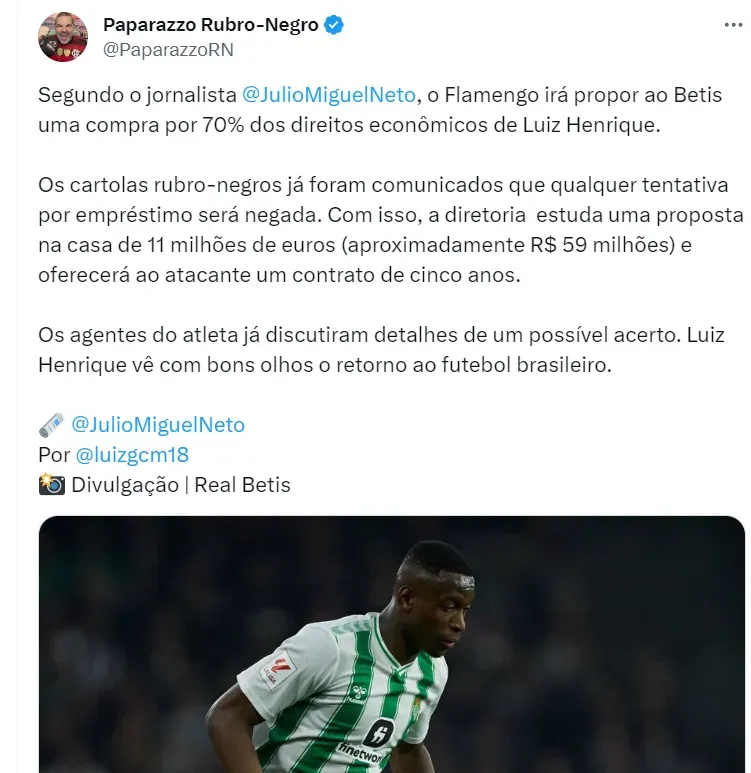 De acordo com informações do portal Sou Rubro-Negro de Coração, Luiz Henrique teria pedido ao Betis para jogar no Flamengo. O jogador sabe do interesse do clube e deseja vestir vermelho, mesmo diante dos outros interessados no país.
