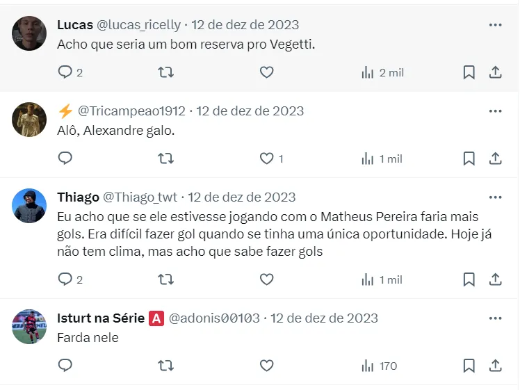 Oferecido, o nome de Gilberto é de agrado de muito dirigente do São Paulo, que entendem que o camisa 9 seria um reserva ideal para o argentino Calleri, dono da posição.