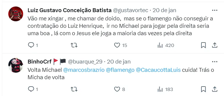 Crescem as chances do atacante Michael, ex-Flamengo e, hoje, no Al Hilal, do futebol saudita, voltar ao futebol brasileiro. O clube saudita está aberto em vendê-lo e até mesmo emprestá-lo.