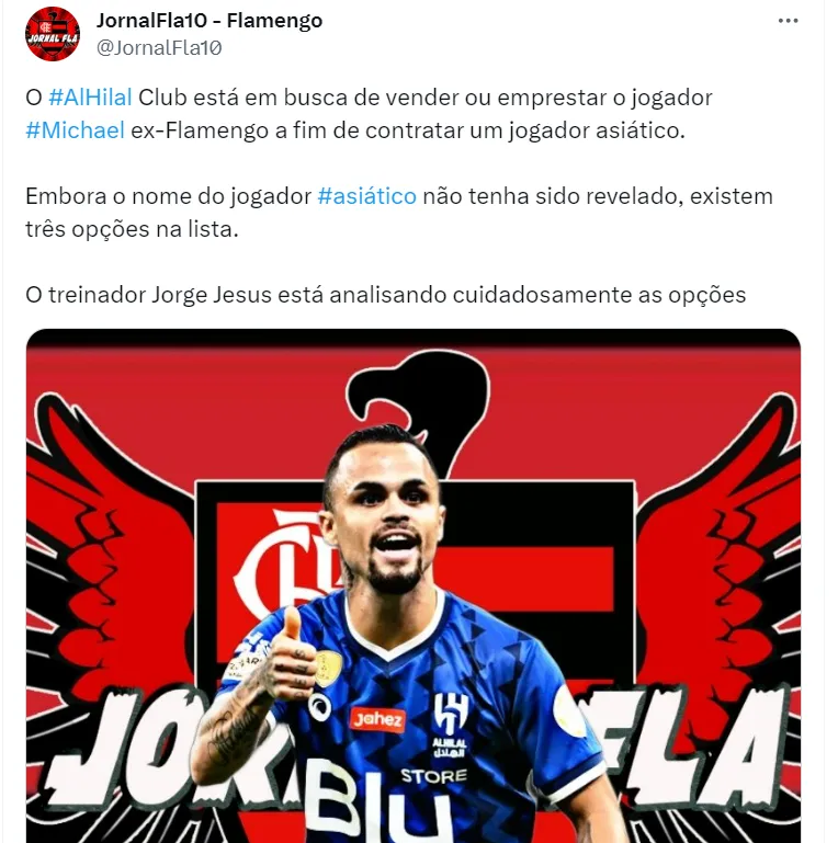 A informação de momento do Jornal Fla 10 conta que o Al Hilal está aberto a fazer negócios envolvendo o nome do jogador, seja por definitivo, que seria um grande valor, e até mesmo empréstimo. A ideia dos sauditas se ‘livrando’ de Micha é acertar a contratação de um jogador asiático.