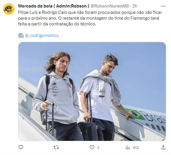 O jornalista Rodrigo Mattos, do UOL Esporte, informou que o zagueiro Rodrigo Caio e o lateral-esquerdo Filipe Luís não devem ter seus contratos renovados com o Rubro-Negro carioca.