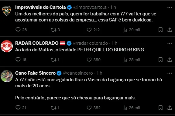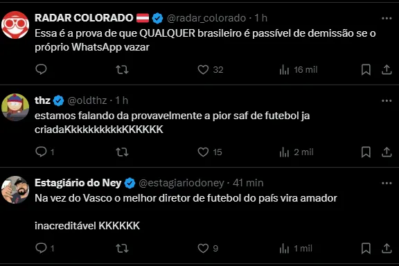 “Coloquei, como sempre fiz, as necessidades do nosso dia a dia de trabalho, agilidade na tomada de posição, até pela concorrência que existe no mercado do futebol”, escreveu o dirigente.